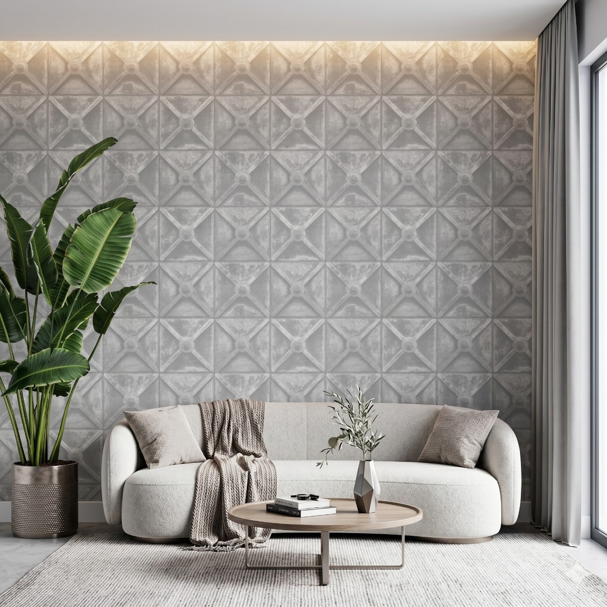 Papel De Parede Geométrico Texturizado Lajotas 3d Cinza