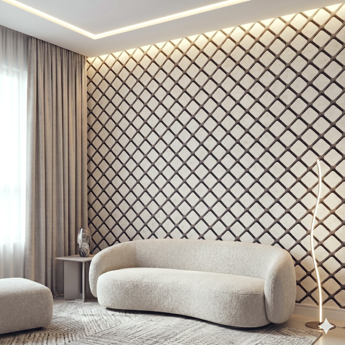 Área de cobertura: Preenche uma parede de aproximadamente 4,5m², considerando a perca de 30cm para encaixe do desenho