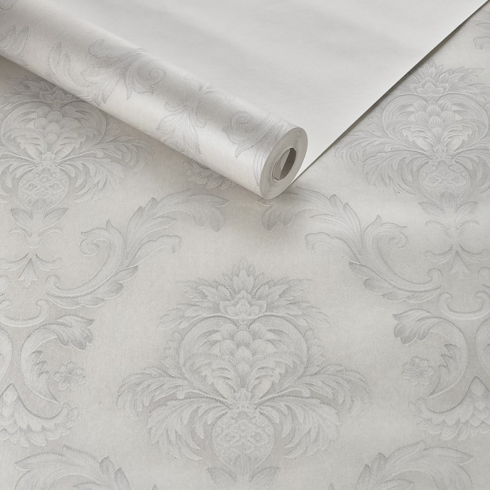 Papel De Parede Importado Lavável Arabesco Cinza Glitter
