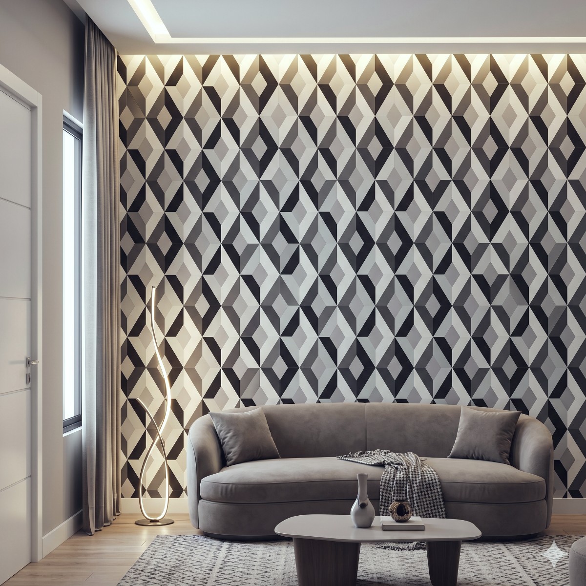 Papel De Parede Importado Vinílico Lavável Losangos 3d