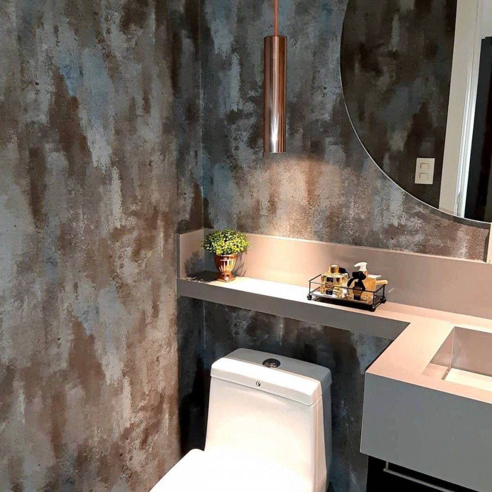 Papel De Parede Texturizado Chumbo Detalhes Azul
