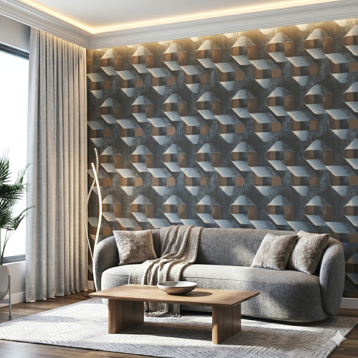 Papel De Parede Vinílico Texturizado Geométrico Cinza Marrom