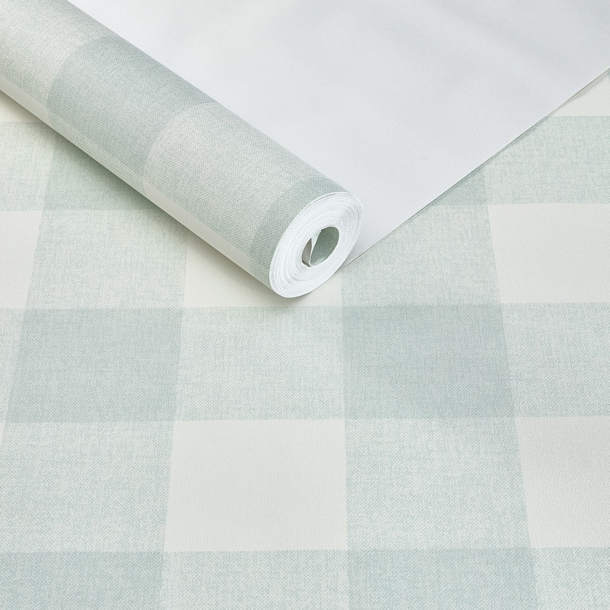 Papel De Parede Vinílico Xadrez Azul Claro Texturizado 10m