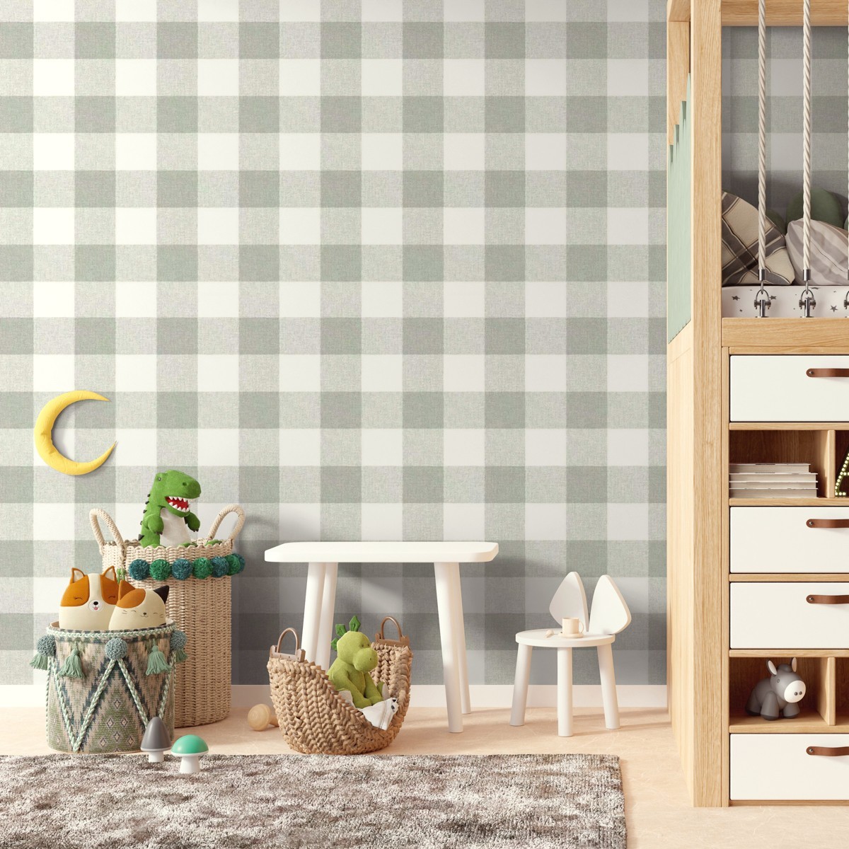 Papel De Parede Vinílico Xadrez Verde Bege Texturizado 10m