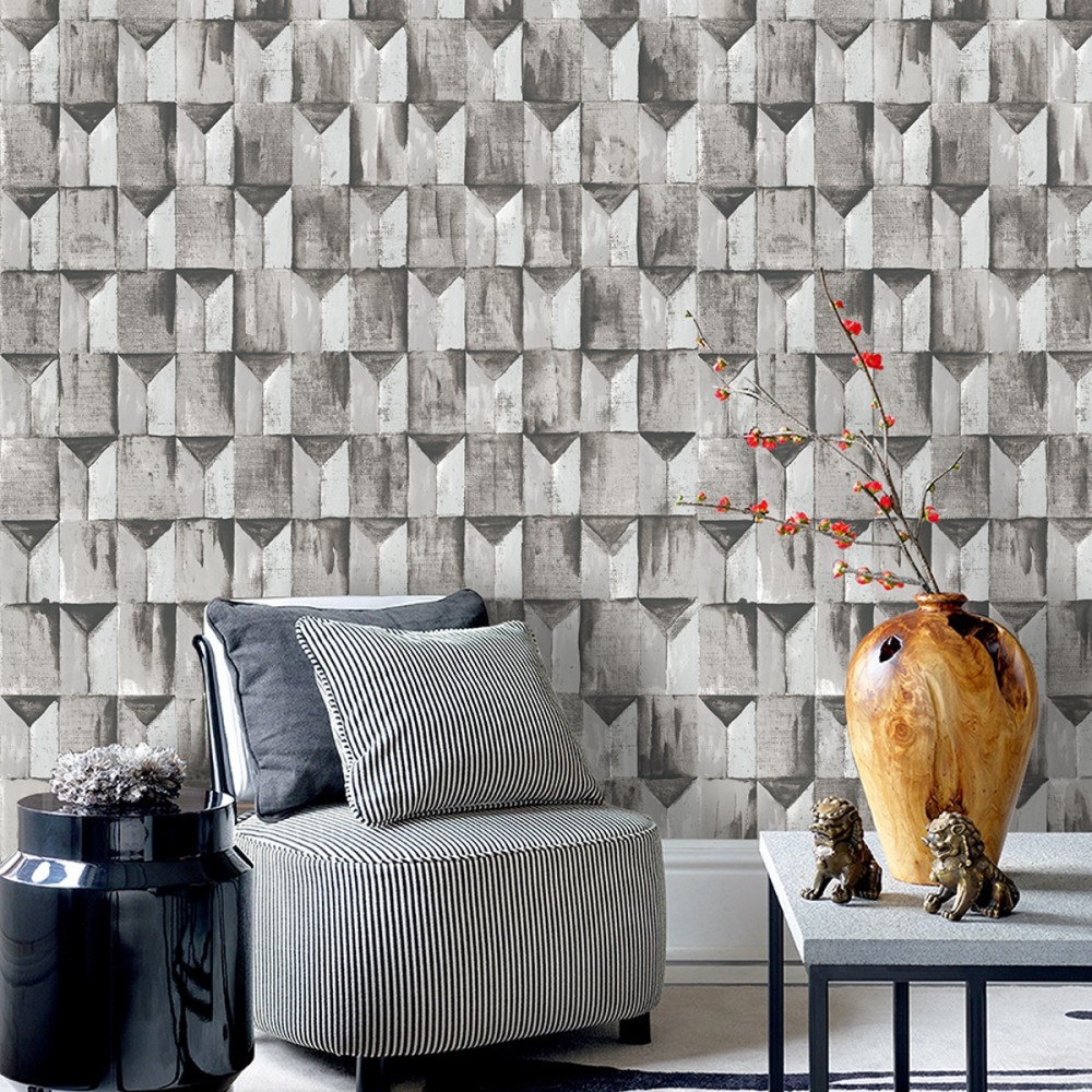 Papel De Parede Vinílico Textura Geométrico Cinza Grey Off