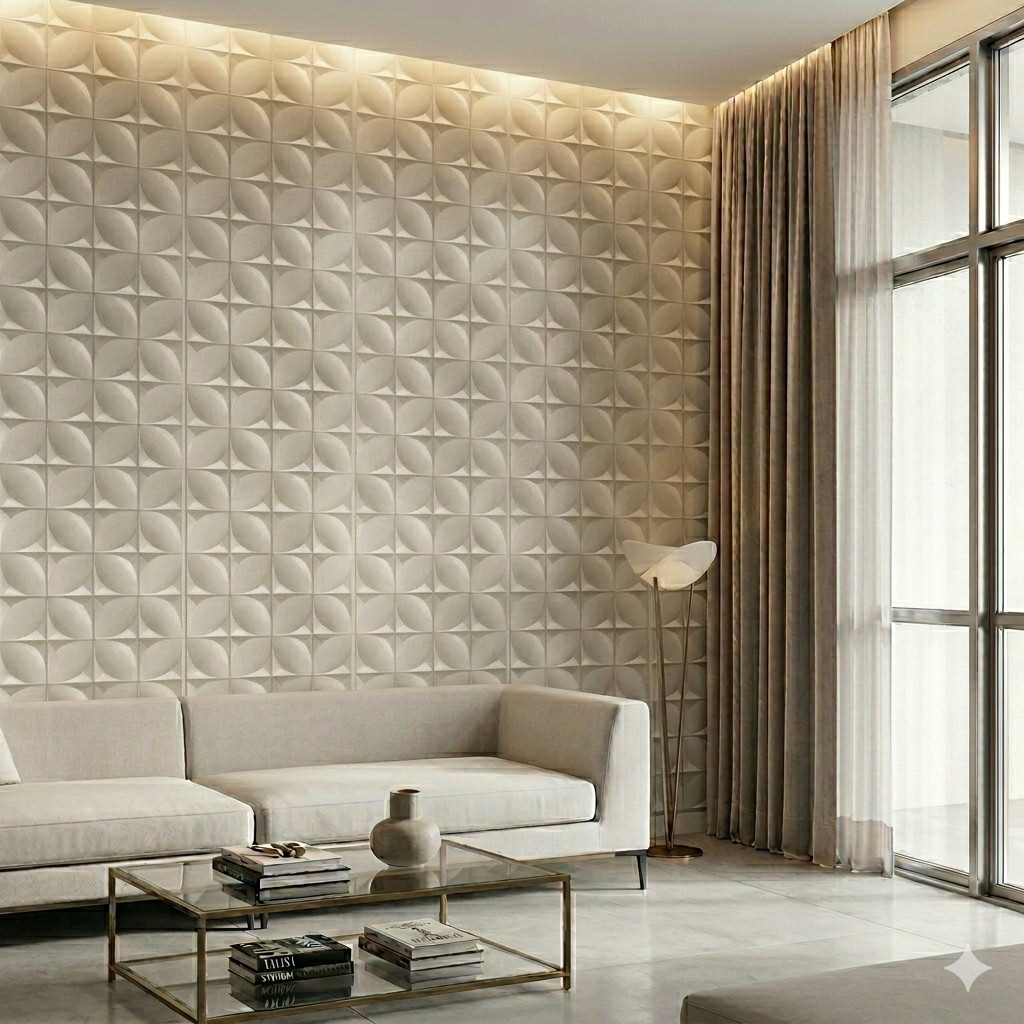 Área de cobertura: Preenche uma parede de aproximadamente 4,5m², considerando a perca de 30cm para encaixe do desenho