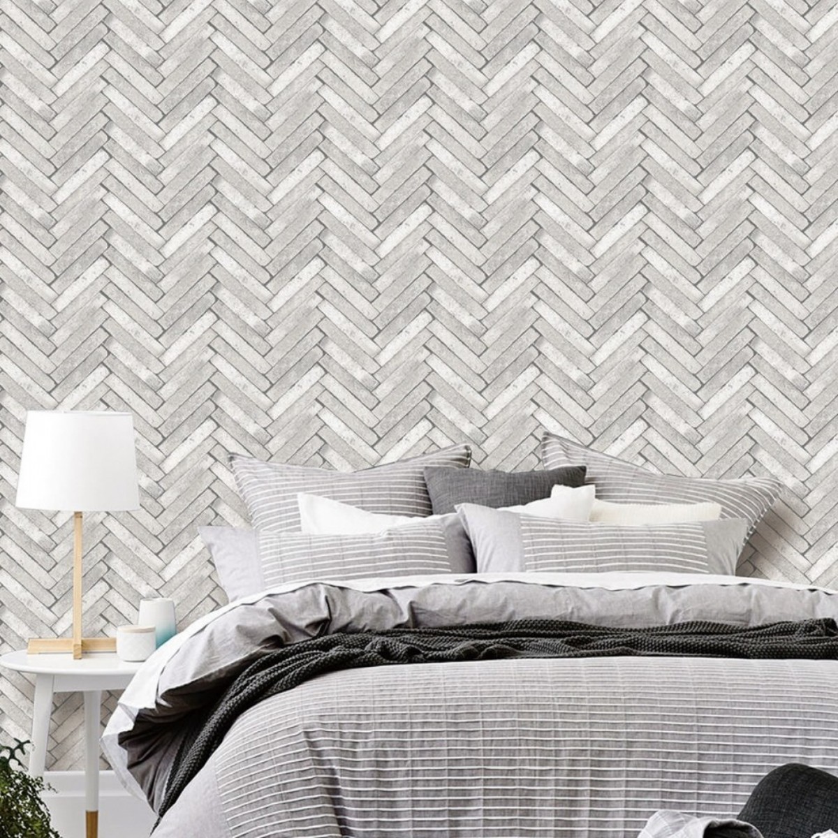 Papel Parede Vinílico Texturizado Branco Cinza Chevron 10m